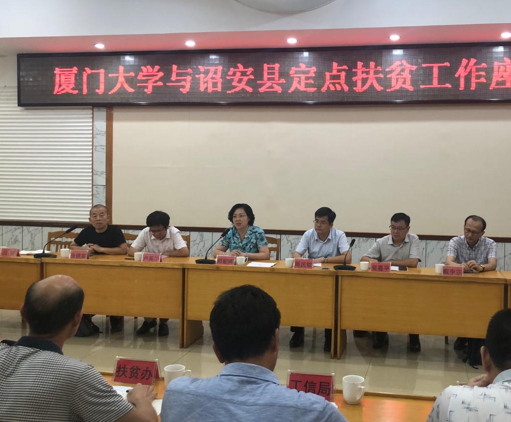 下午,厦门大学与诏安县定点扶贫工作座谈会在诏安宾馆召开。邓朝晖一行与诏安县政府、扶贫办、发改局、工信局、卫健局、教育局、县总院、工业园区、部分企业相关负责人深入商议了产业帮扶、科技帮扶、健康帮扶、智力帮扶等事宜。