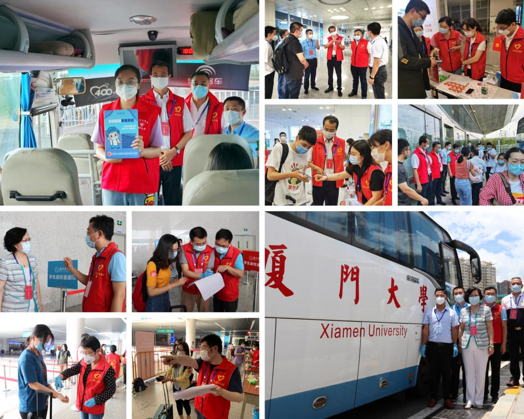 根据学校疫情防控工作部署要求,学校办公室第一、第二党支部积极响应机关党委号召,踊跃参加毕业生返校接机接站工作,5月16日,办公室党支部18名党员分别前往机场T4航站楼、厦门火车站、厦门北站、思明校区下车点开展志愿服务。校长张荣、校党委副书记赖虹凯、副校长邓朝晖以办公室党支部党员身份参加活动。