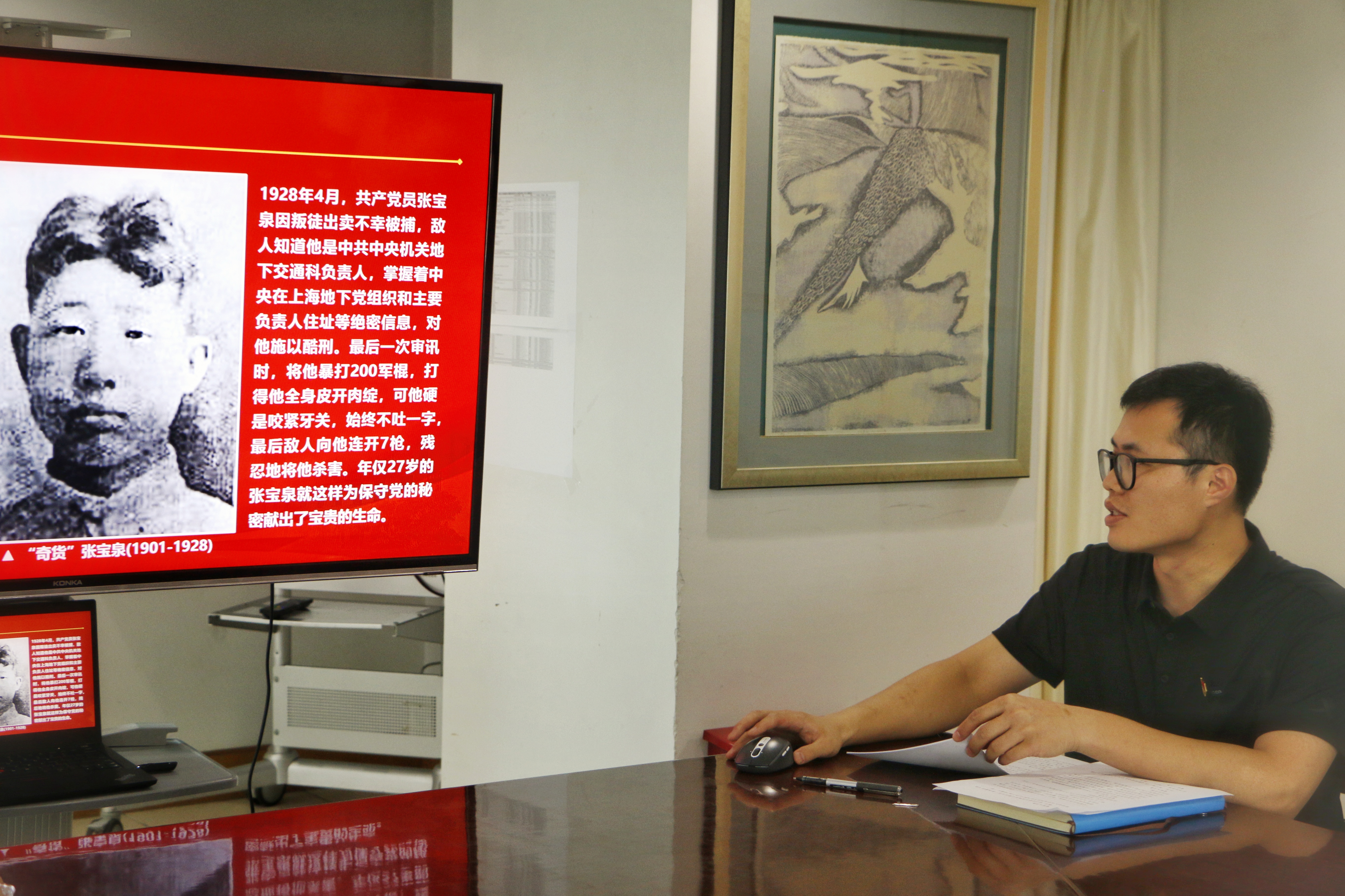 学校办公室第二党支部组织委员张晟鹏以“红色往事:镌刻在党旗上的保密故事”为题,讲述了从中国共产党创立到中华人民共和国成立期间,党的保密工作与党的事业相生相伴,为党的创建发展和革命事业胜利,发挥了极其重要的保障作用,做出了“保生存、保胜利”的卓越贡献。革命战争年代,党的保密工作历史是用革命先烈的鲜血写成的,经过历史凝聚和锤炼的保密工作光荣传统和优良作风,历久弥新,其思想内涵极为丰富深刻,是历史留给后人的宝贵精神财富。