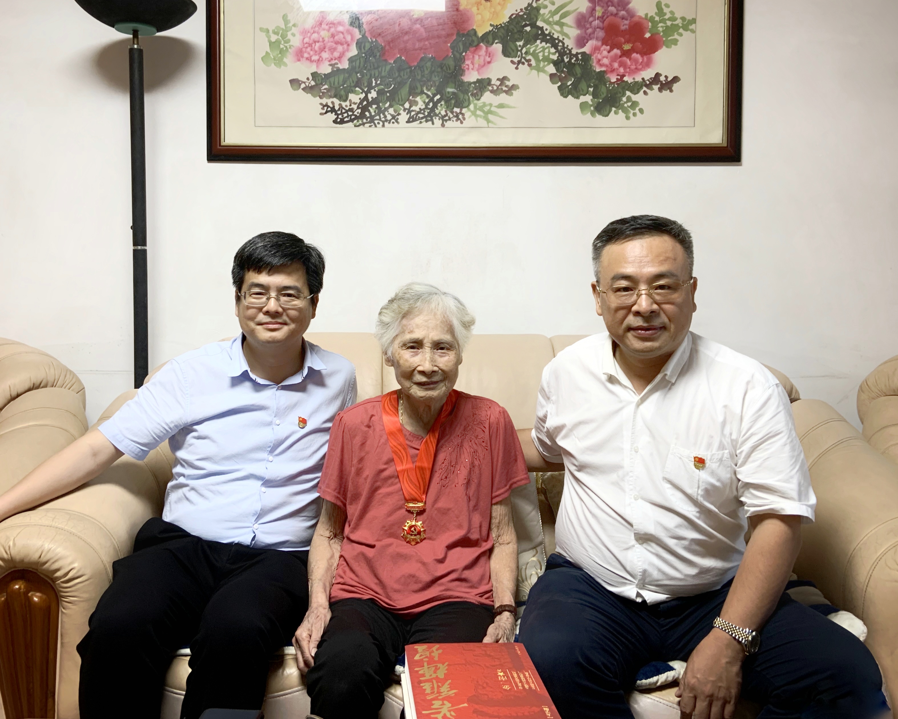 在庆祝中国共产党成立100周年之际,6月11日,学校办公室第一党支部书记、主任李智勇,学校办公室第二党支部书记、副主任马进龙,学校办公室第一党支部宣传委员、副主任周民钦等一行分别走访慰问了支部中的老领导、老同志,并根据机关党委工作安排,为支部老党员陈旭华、曾宪理同志佩戴上由中共中央授予的“光荣在党50年”纪念章,向老党员们表示了崇高的敬意。
