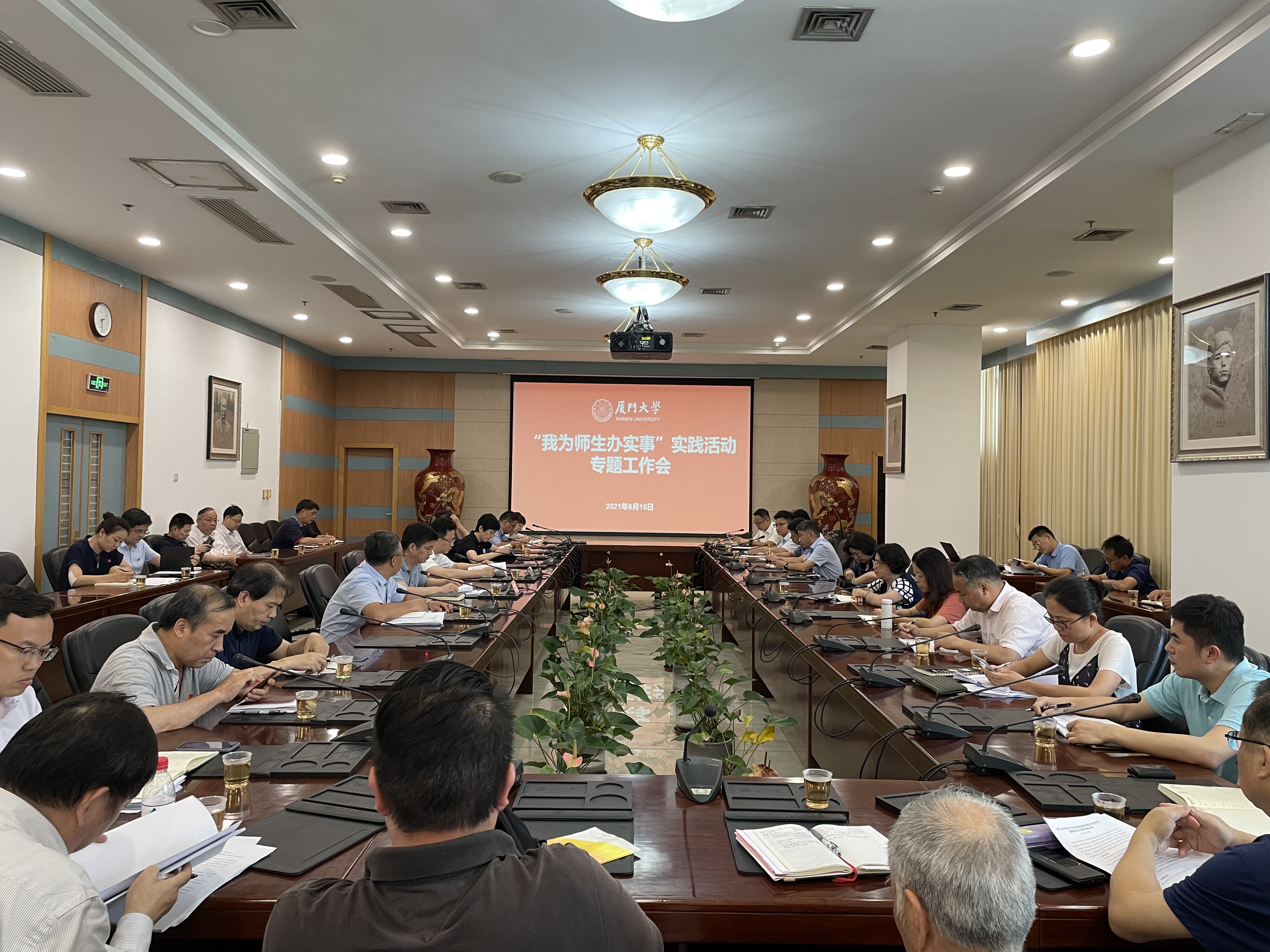 6月15日下午,厦门大学召开“我为师生办实事”实践活动专题工作会,进一步对标中央和上级文件精神,再研究、再提升,讨论完善《厦门大学“我为师生办实事”实践活动重点项目清单》,切实把“实”的要求落实到位。校党委副书记、校党史学习教育领导小组副组长兼办公室主任徐进功出席会议并讲话。
