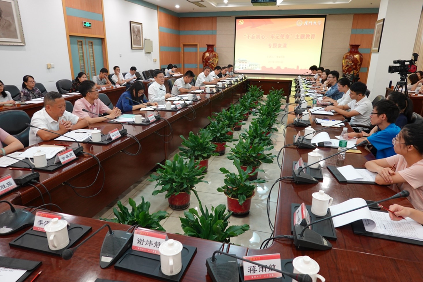 10月15日下午,厦门大学“不忘初心、牢记使命”主题教育学生专场调研会暨第二期“校长零距离”座谈会在颂恩楼举行。校党委副书记、校长张荣与学生代表围绕“‘五育’并举,学以成人”主题交流座谈,并作题为《传承优良传统,努力成为德智体美劳全面发展的时代新人》的主题教育党课。中央第三指导组有关同志到会指导。